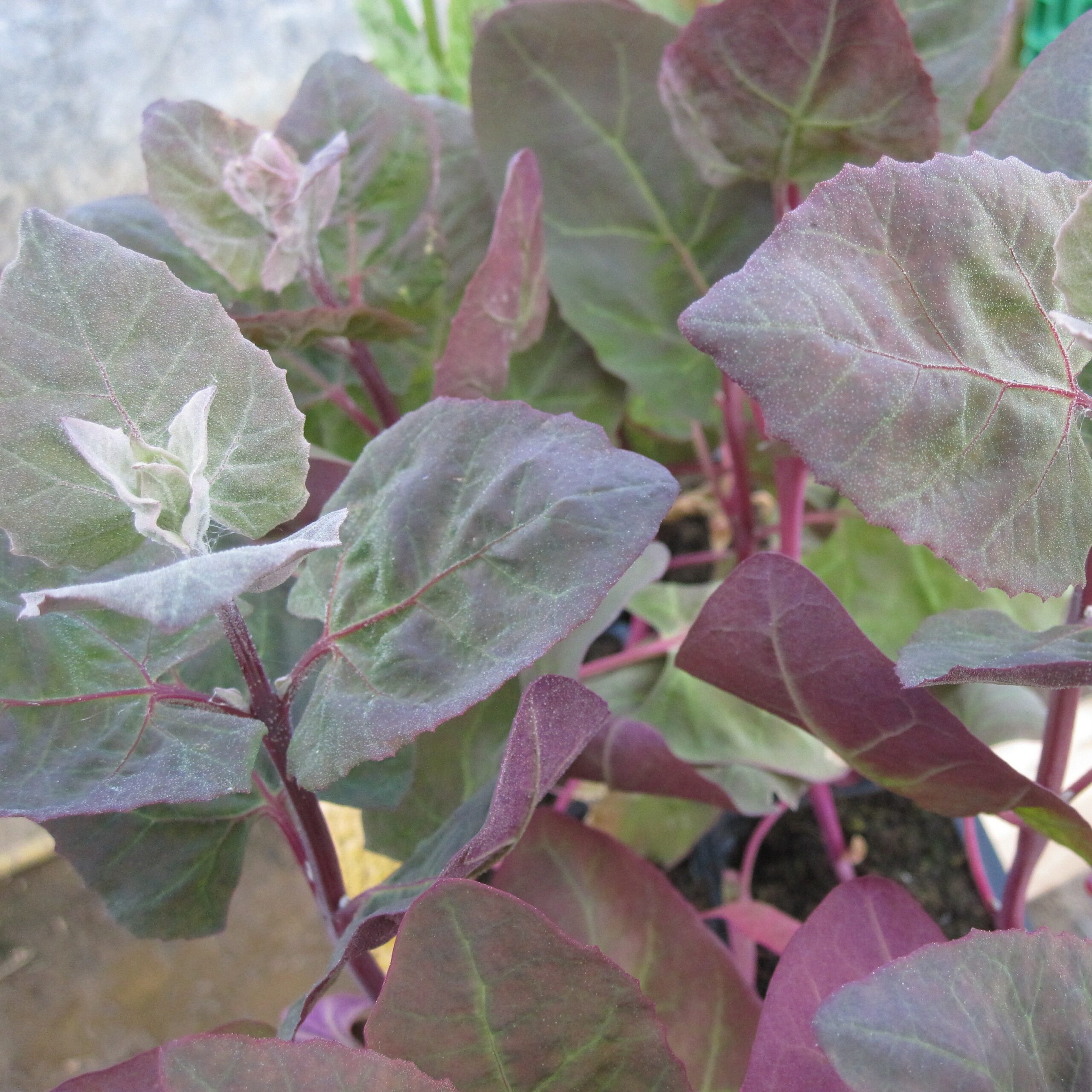 Cette variété vigoureuse produit des feuilles dentelées et épaisses d’un beau violet profond qui se consomment crues ou cuites comme les épinards.